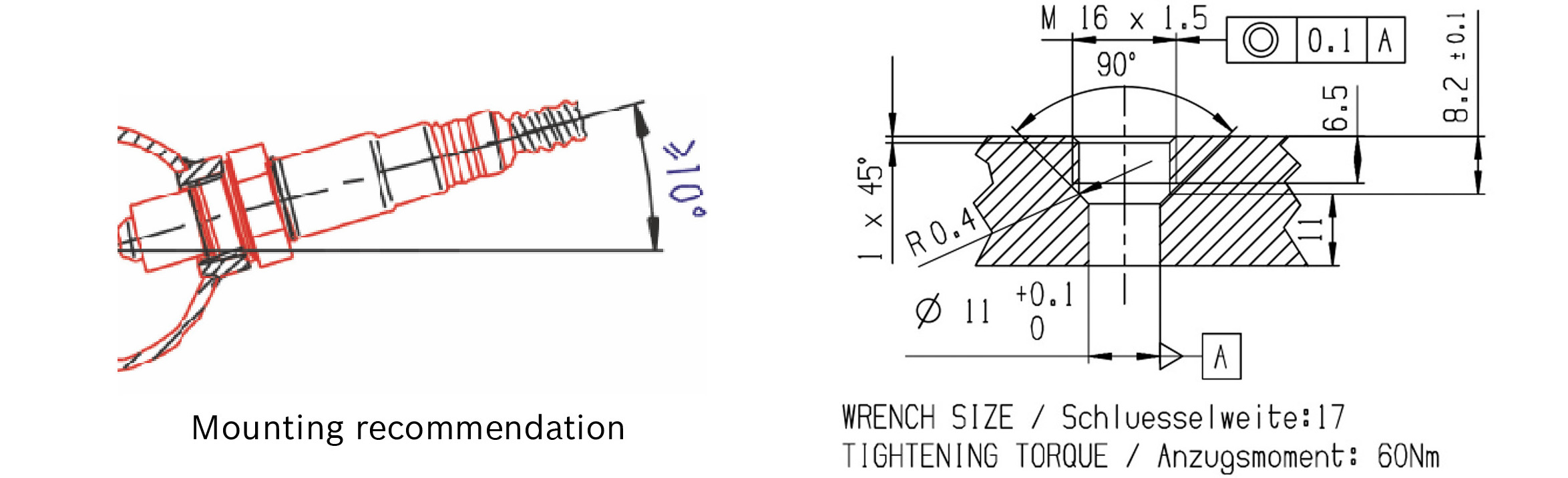Protect the sensor against condensation water. The sensor is not to be painted, nor is wax to be applied or any other forms of treatment. Use only the recommended grease for lubricating the thread. |