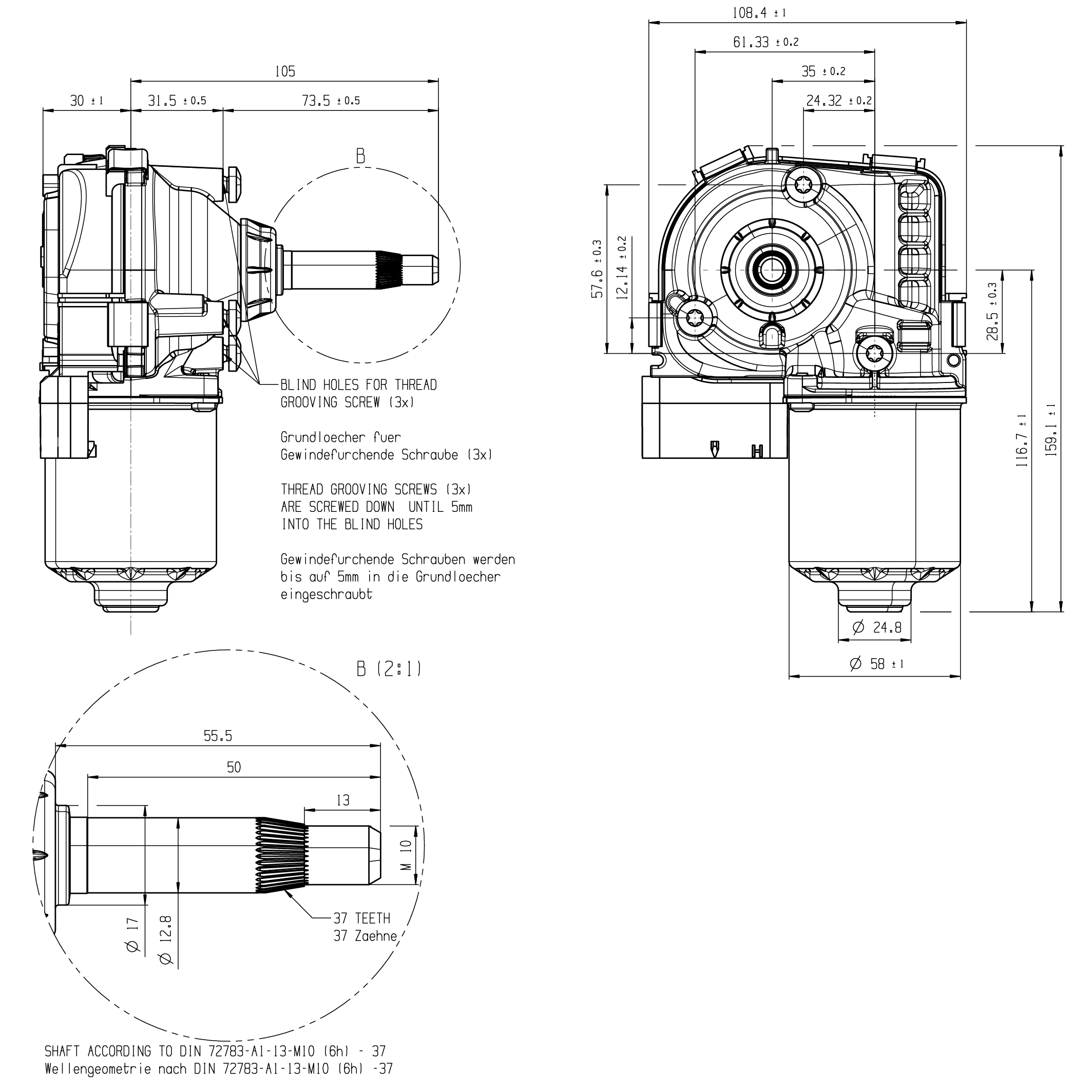 The Wiper Direct Drive WDD2 is a wiper motor designed to execute reversing movements instead of rotating 360° like a conventional wiper.